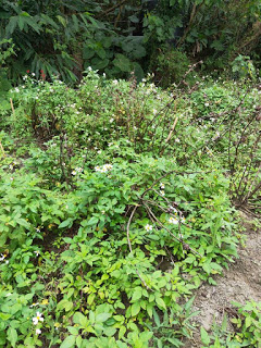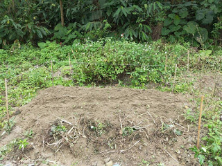 今天(2/14)天氣不錯,預計要在阿爸森林的永久屋區拔除乾枯的洛神花及雜草,整理出一塊平整的地後,要種下選好的菜種及花種。記得跟媽媽說時,她問我會不會種?我說:就挖個洞將種子放進去就好啦,她笑得好大聲,說是不用鬆土喔!因此,今天在整地時,特地拿個大鋤頭將雜草和枯洛神除掉,同時將地鬆了一遍。