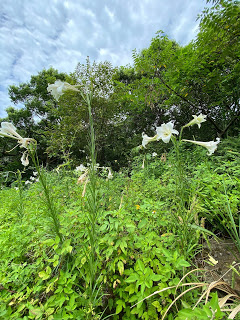 再往前蓮花池旁、山坡上,台灣百合,百花盛開,盛況美極了!