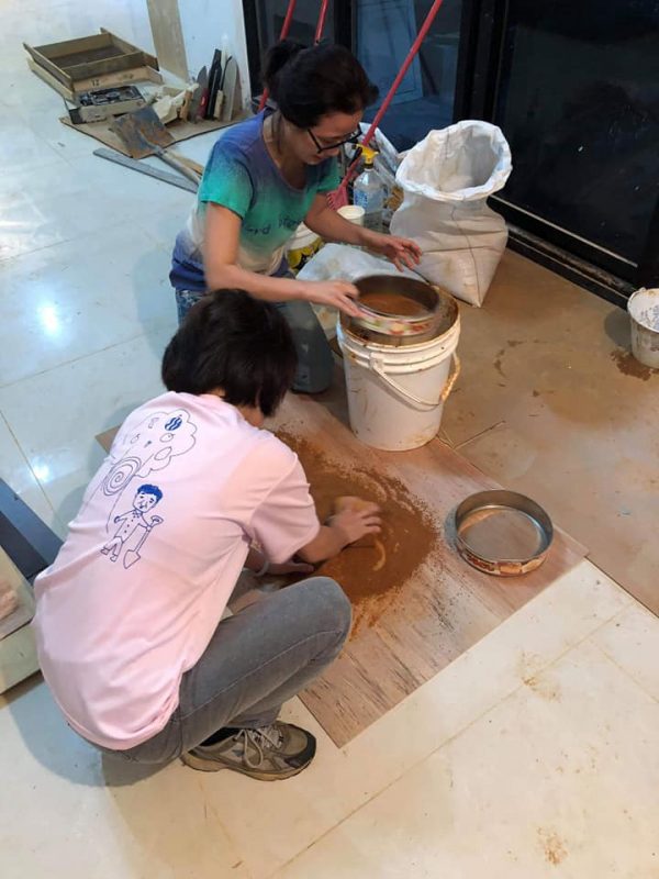 在昨天進行土牆製作後,帶著愉悅新鮮的心情進行今天的主要工作-草泥牆