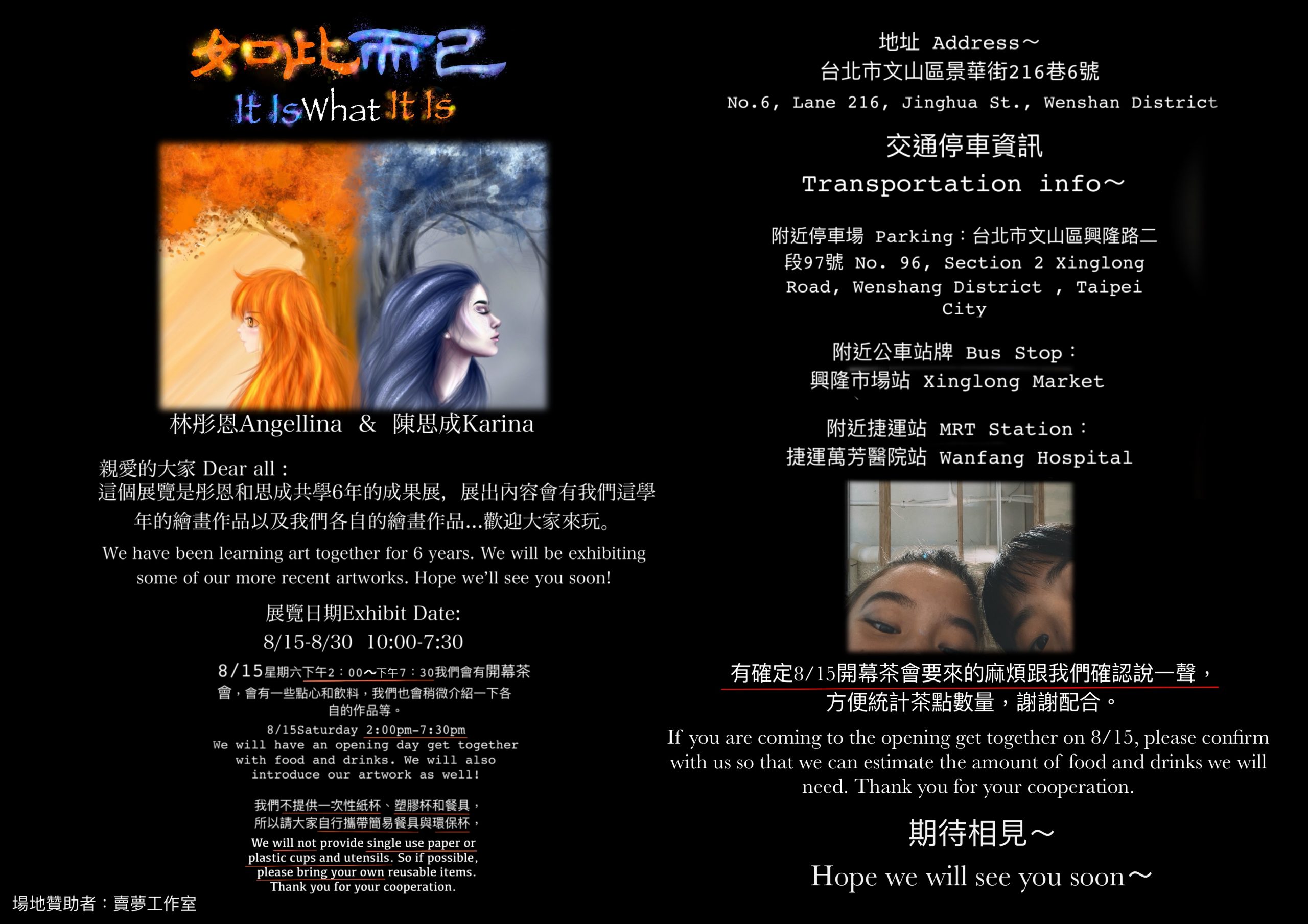 相信一些朋友們已經知道畫展的消息了~ 現在已經邁入今年的八月份了,也代表著畫展進入了倒數階段~ 再過十一天就是畫展的開幕日囉~ 這次畫展是由兩位自學生小畫家、小畫家們的家長及親友的支持鼓勵與幫助才得以舉辦的! 希望大家都給予他們祝福與鼓勵! 在舉辦畫展的同時,8/15也是賣夢工作室第一次對外開放,到時請大家多多指教! ...
